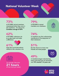 In advance of this year’s National Volunteer Week (April 14-20), RTOERO surveyed its 84,000 members about how and why they volunteer. For most members, volunteering in retirement continues a tradition of giving back.