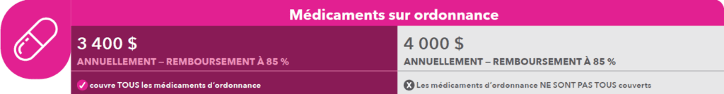 • 3 400 $ par année | couvre tous les médicaments sur ordonnance